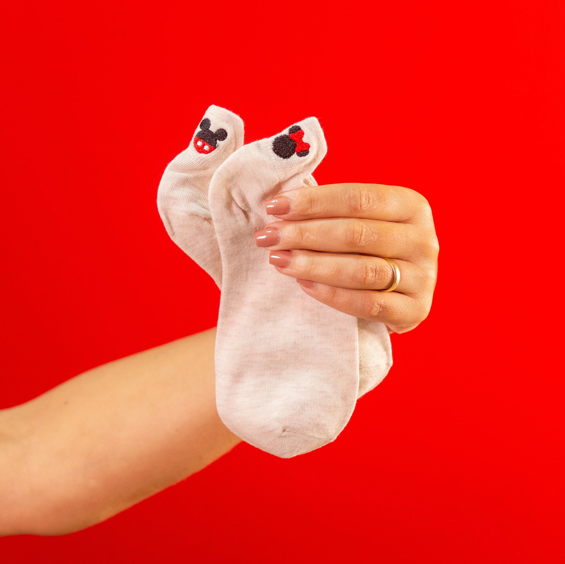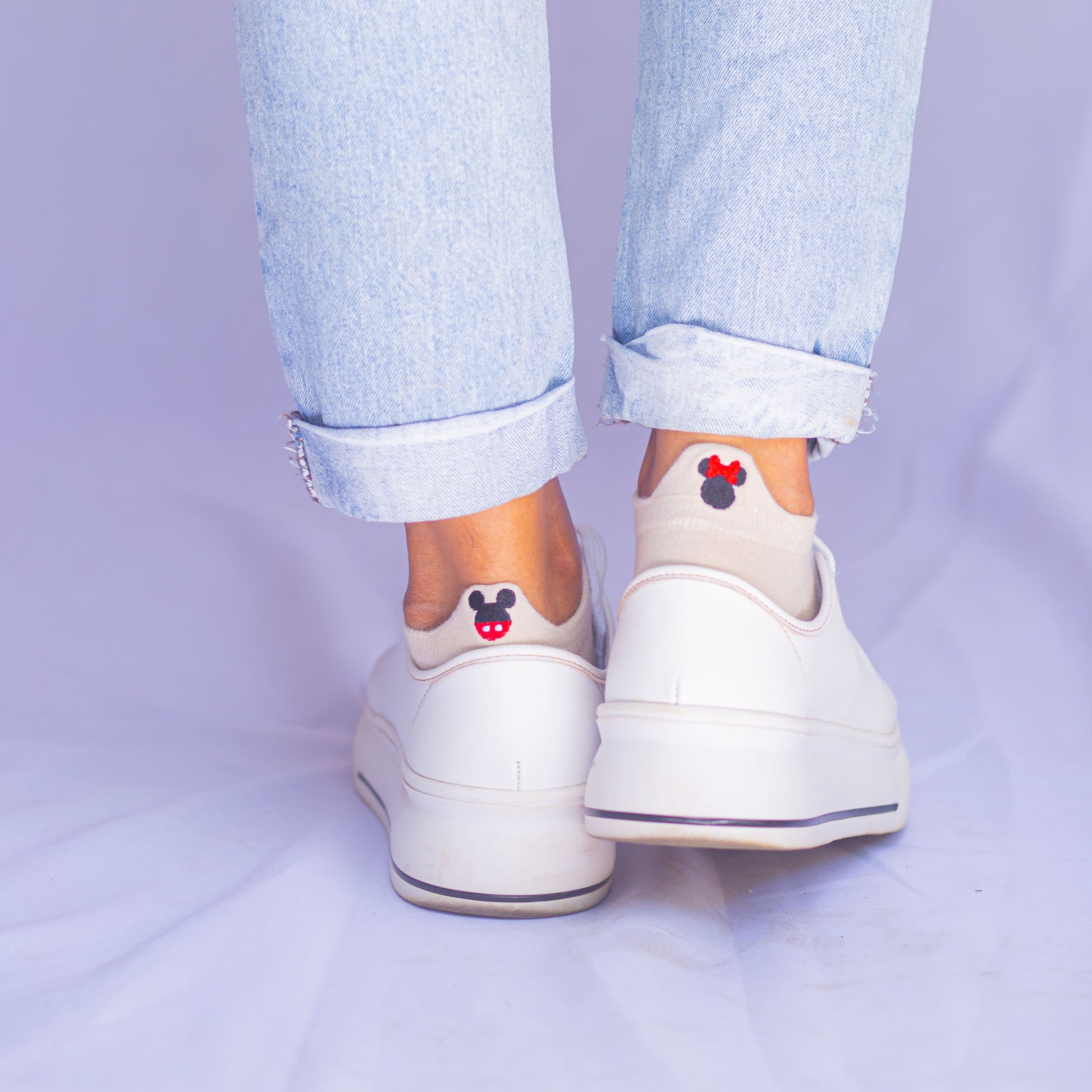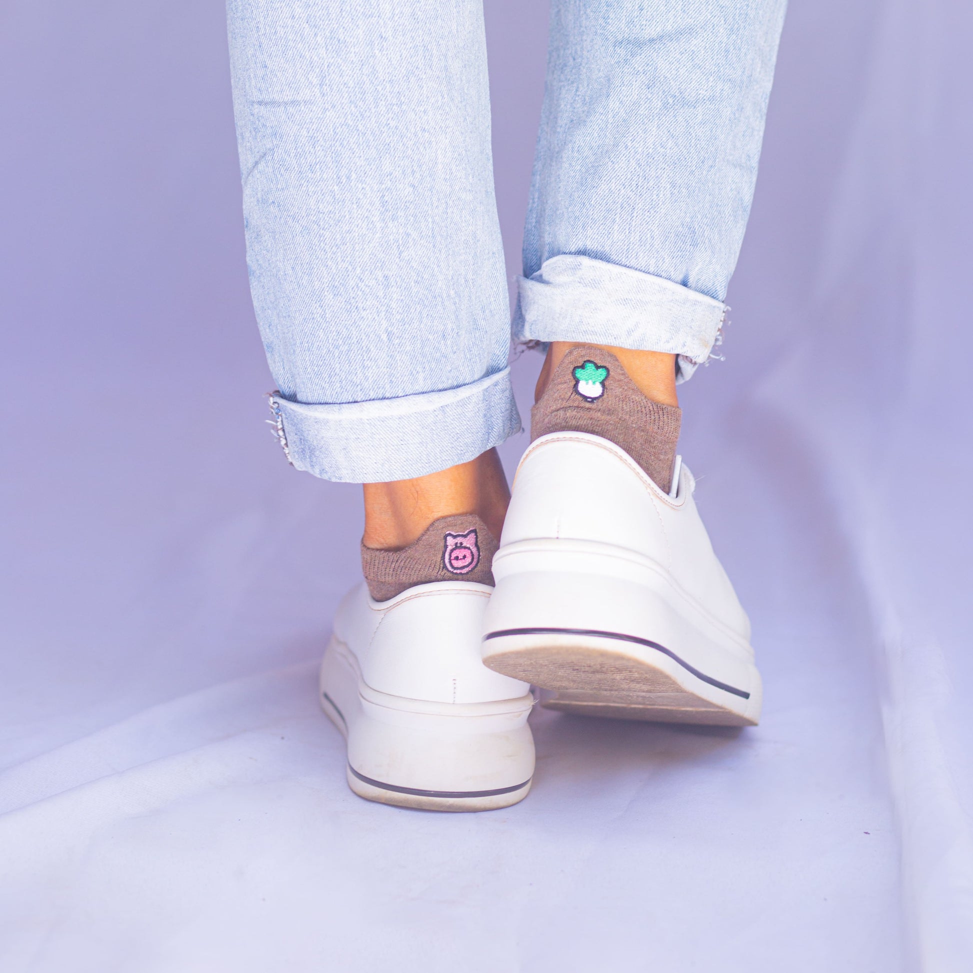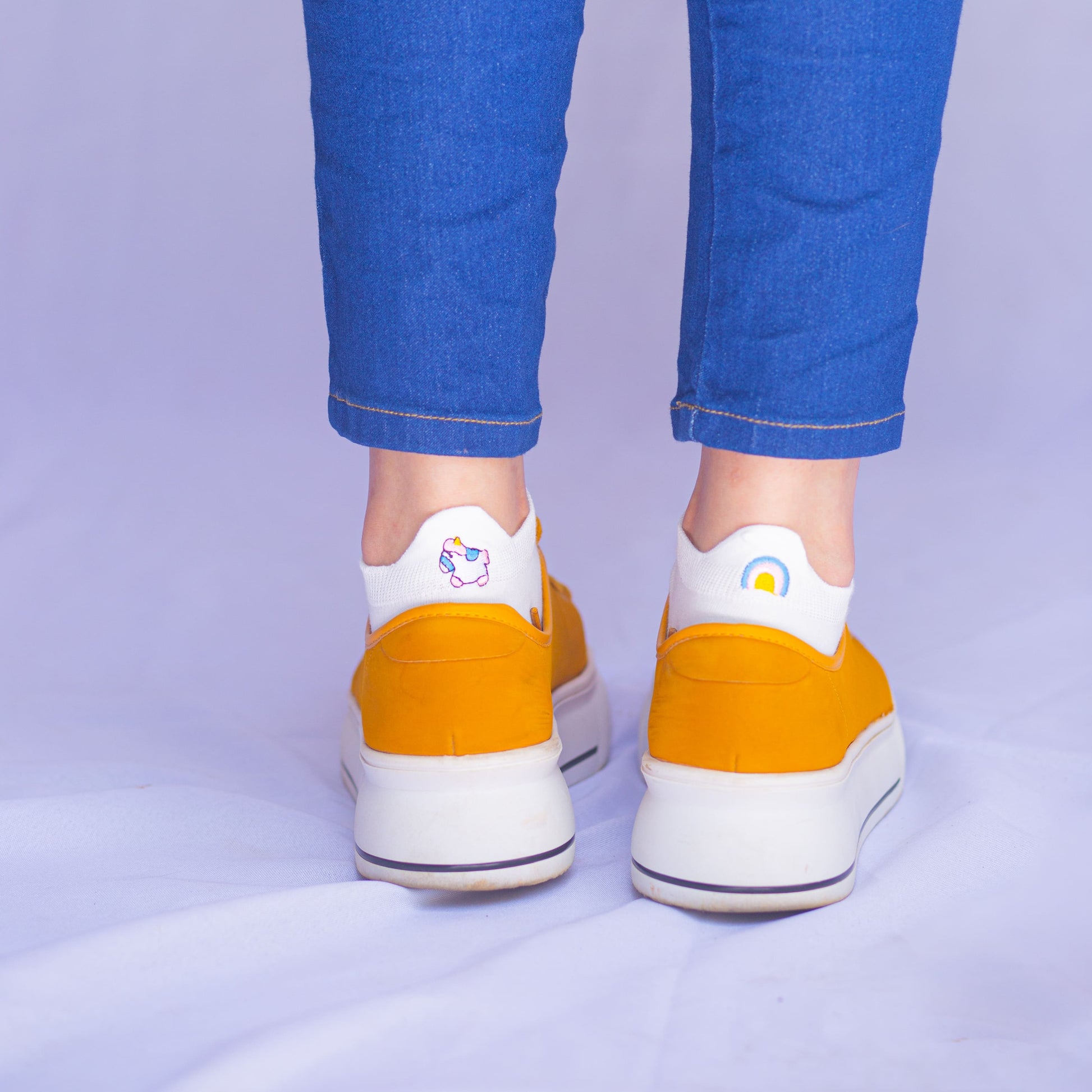 Meias brancas com proteção no calcanhar, kit com 5 pares com diferentes bordados