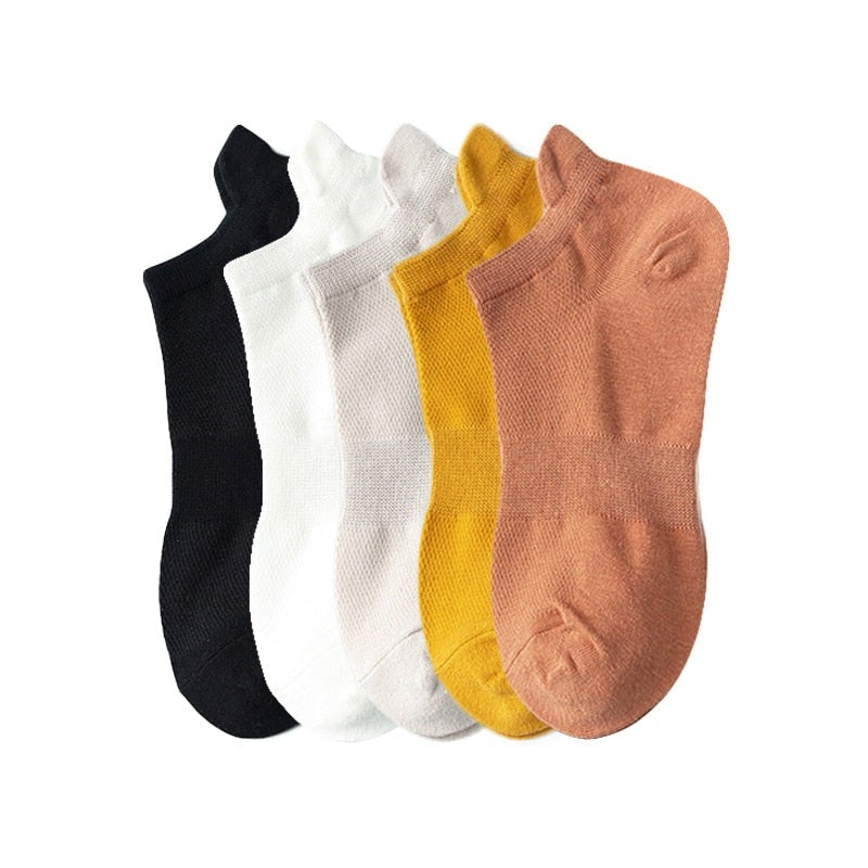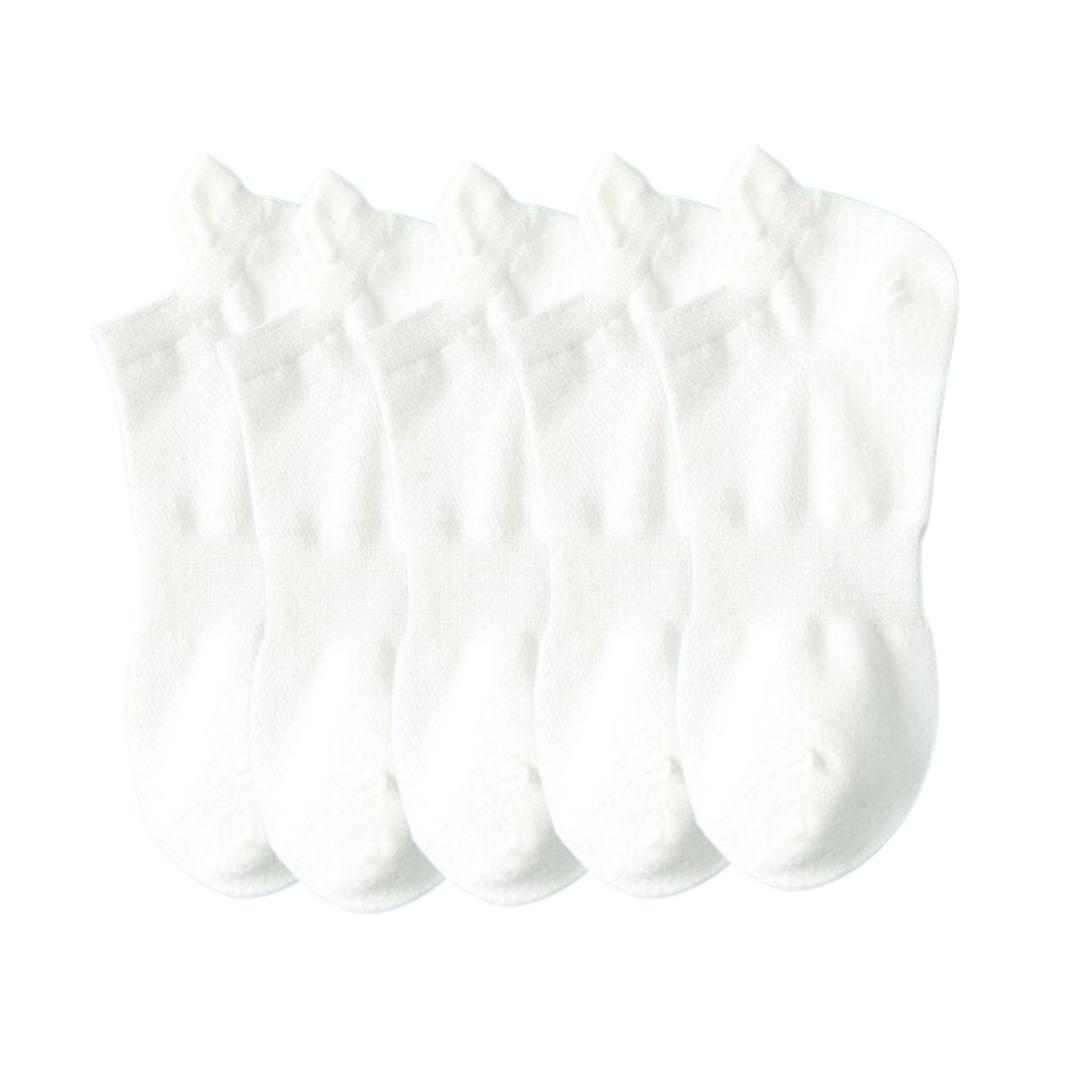 Meias brancas com proteção no calcanhar, kit com 5 pares com diferentes bordados