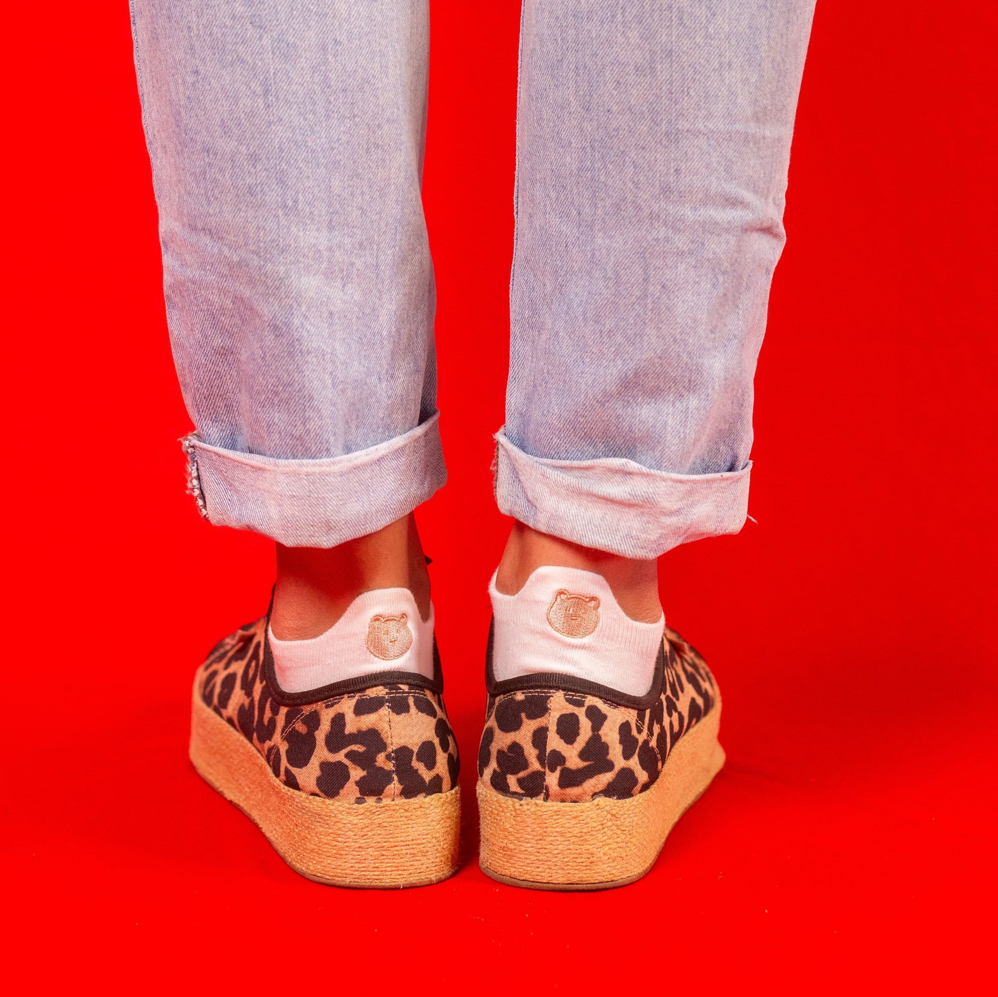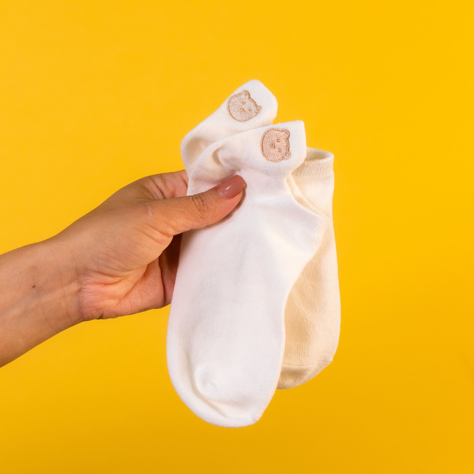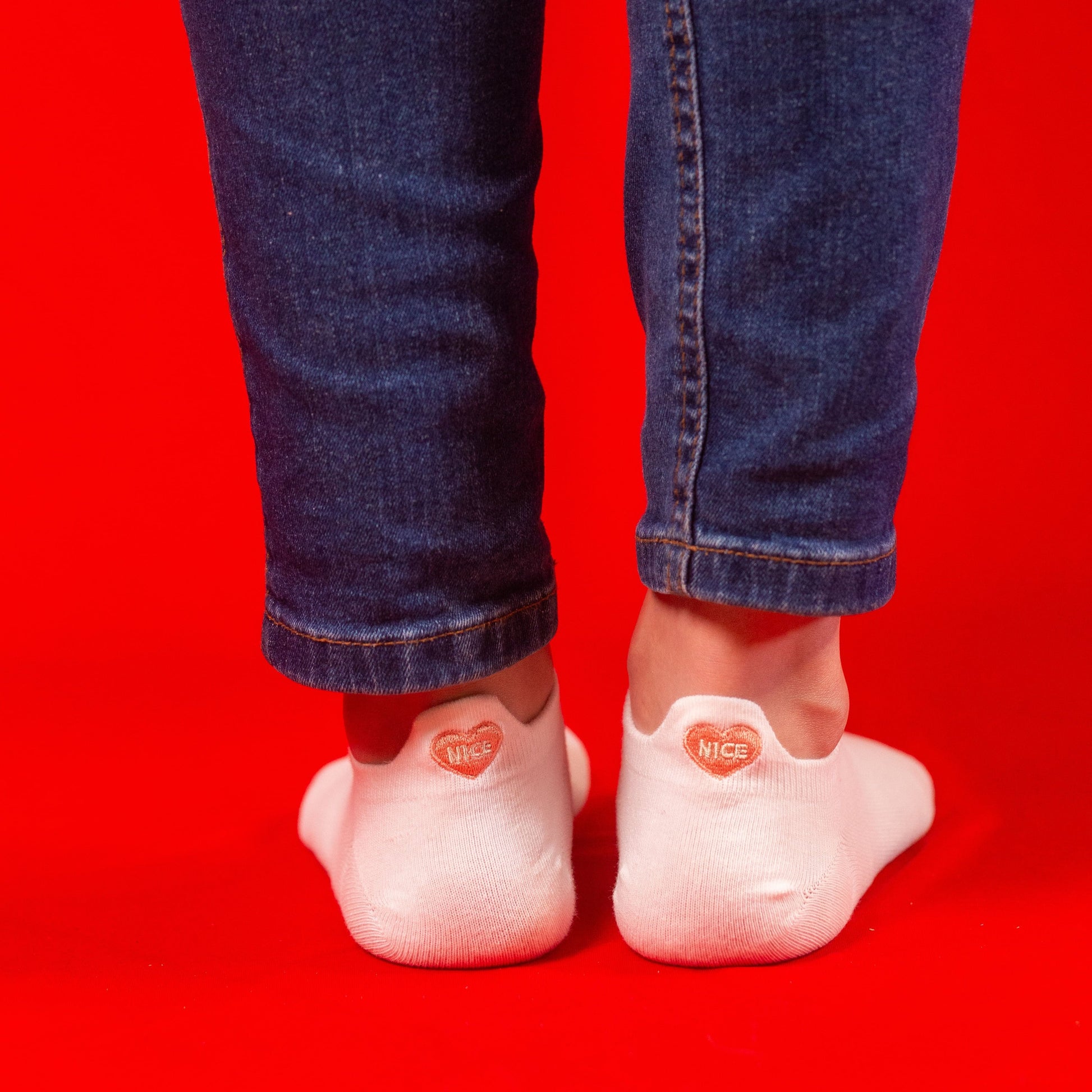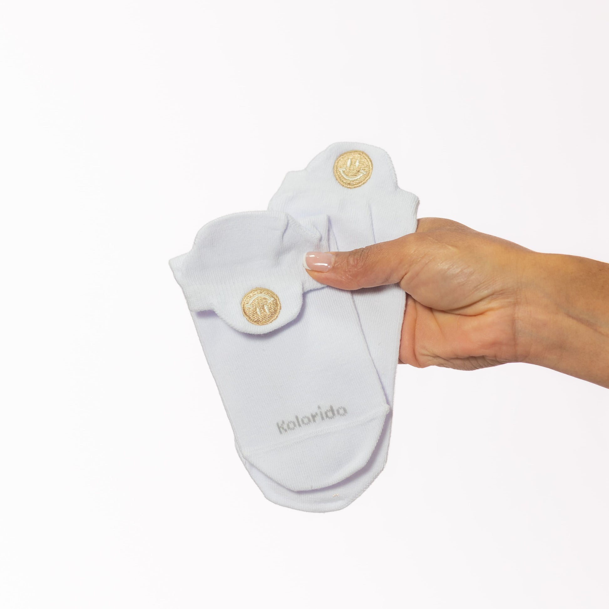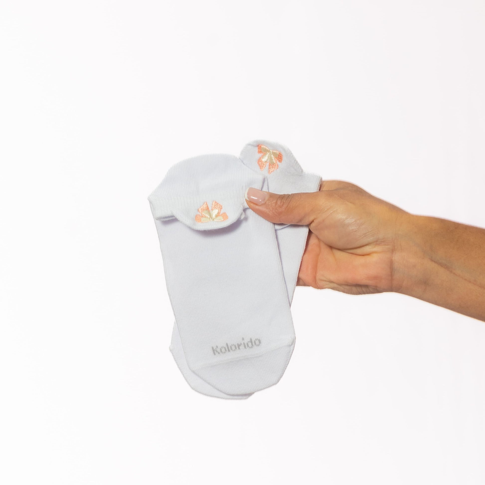 Meias brancas com proteção no calcanhar, kit com 5 pares com diferentes bordados