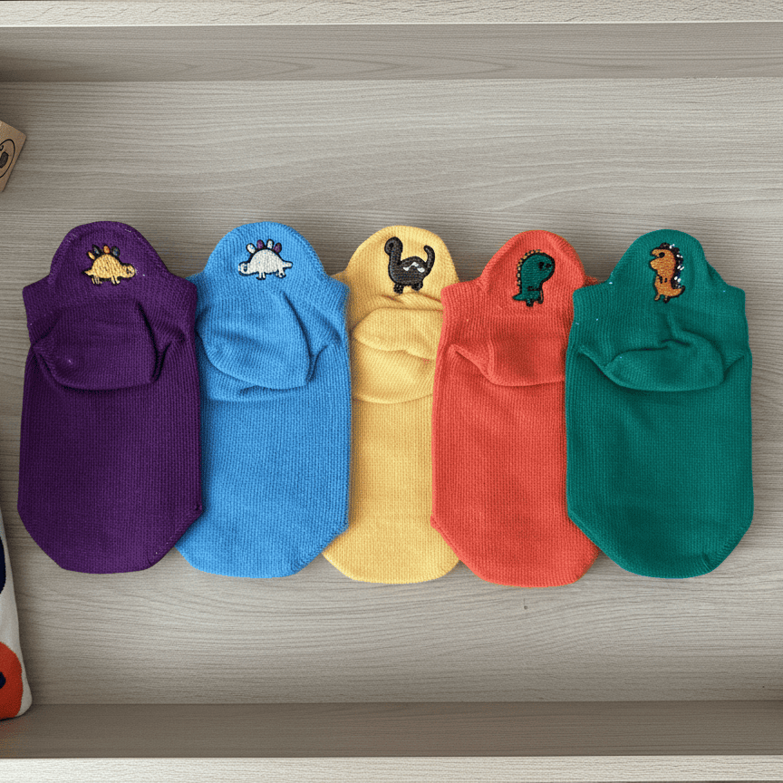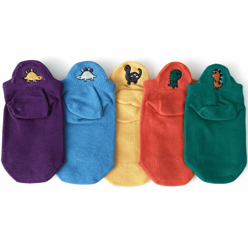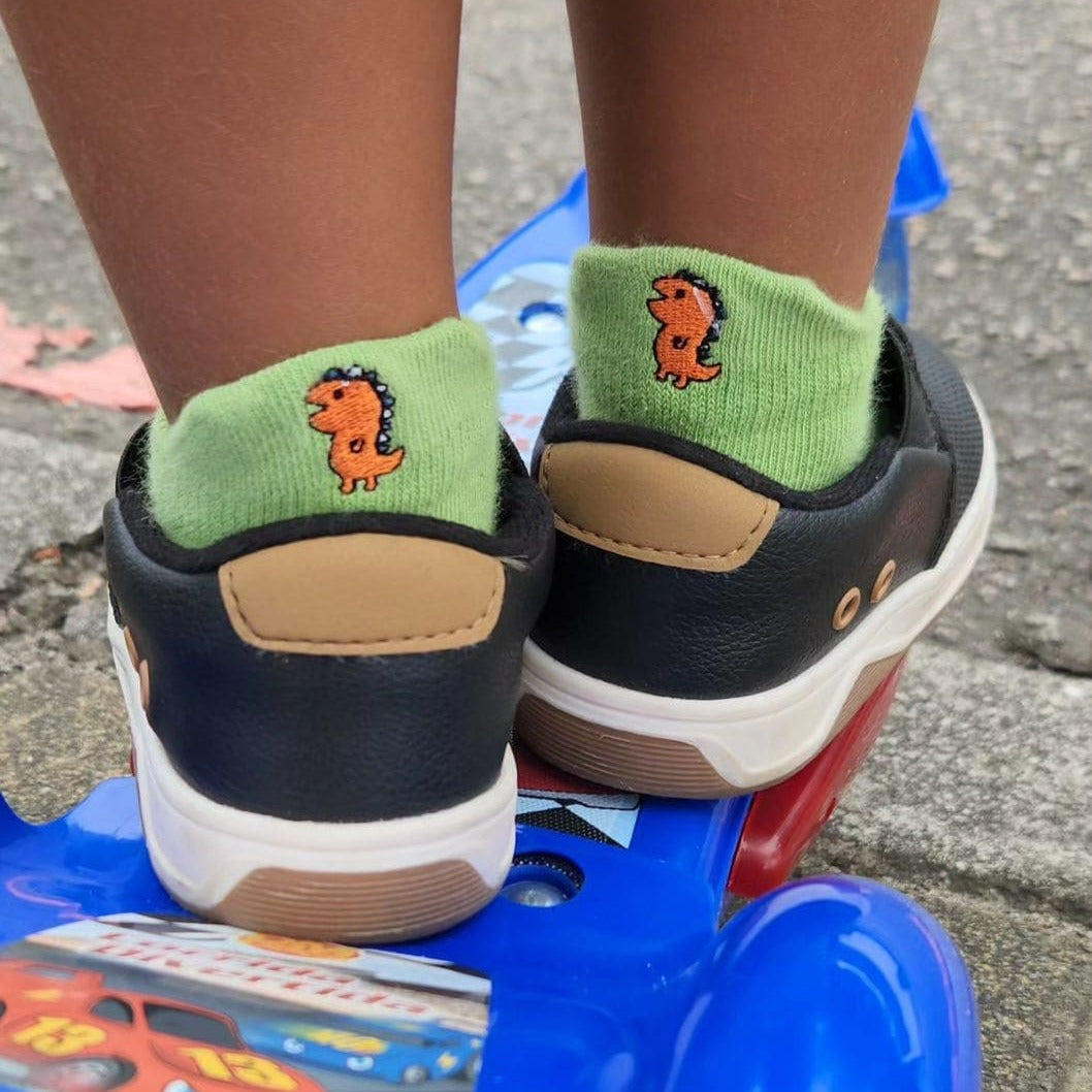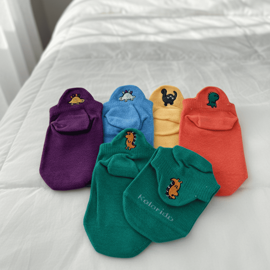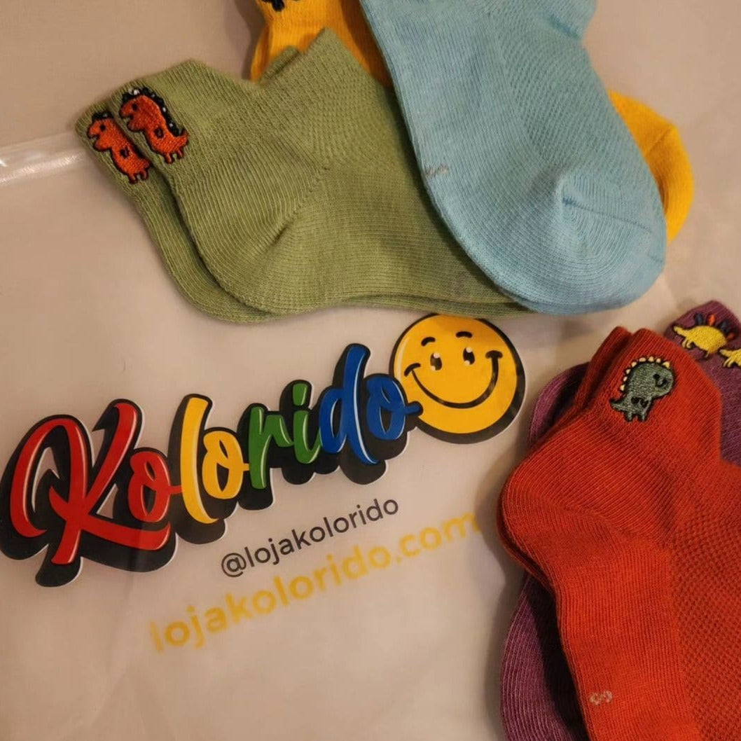 Meias brancas com proteção no calcanhar, kit com 5 pares com diferentes bordados