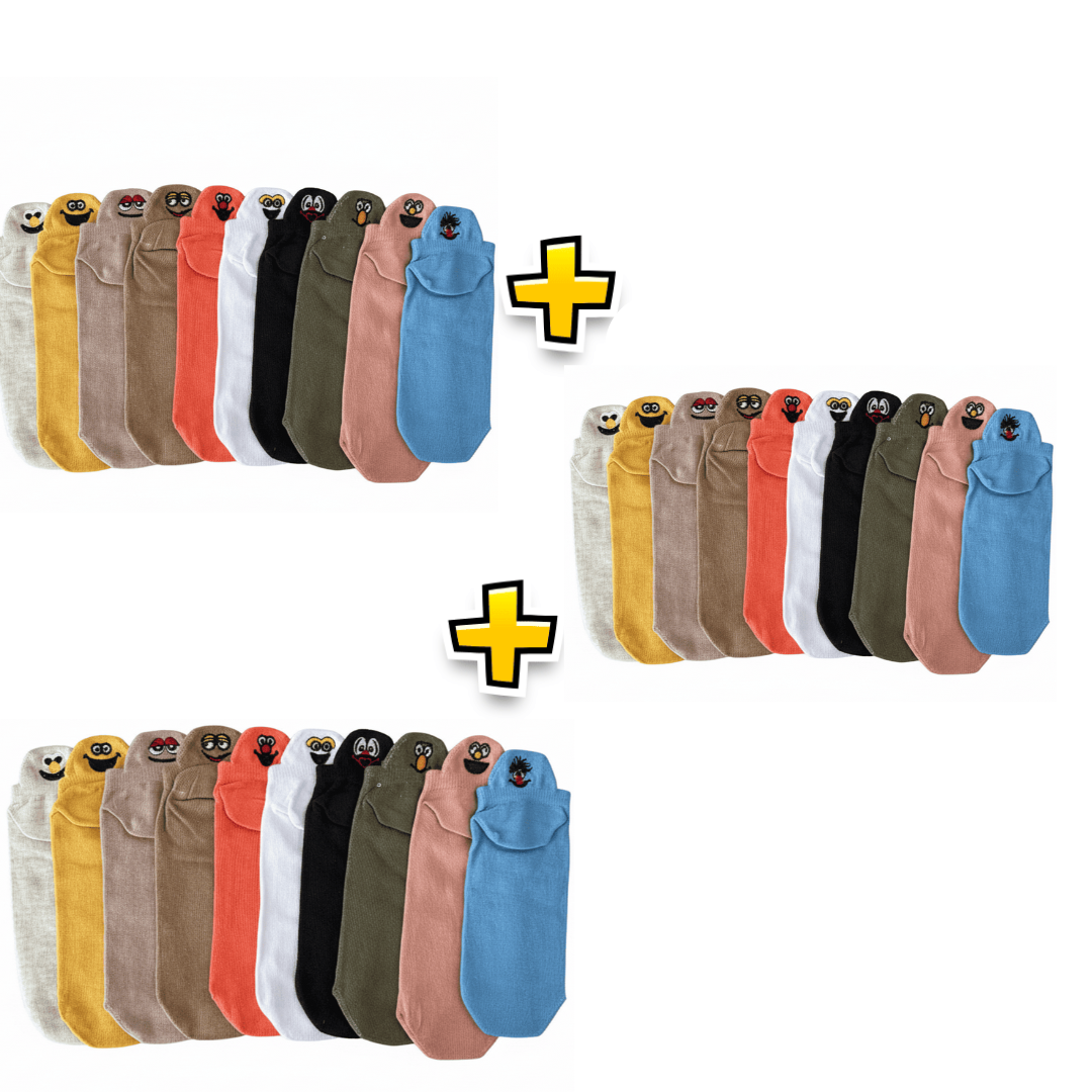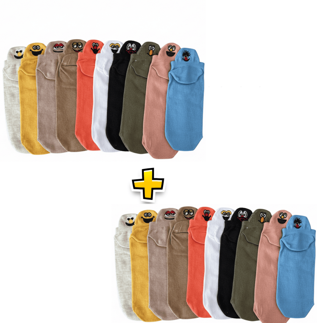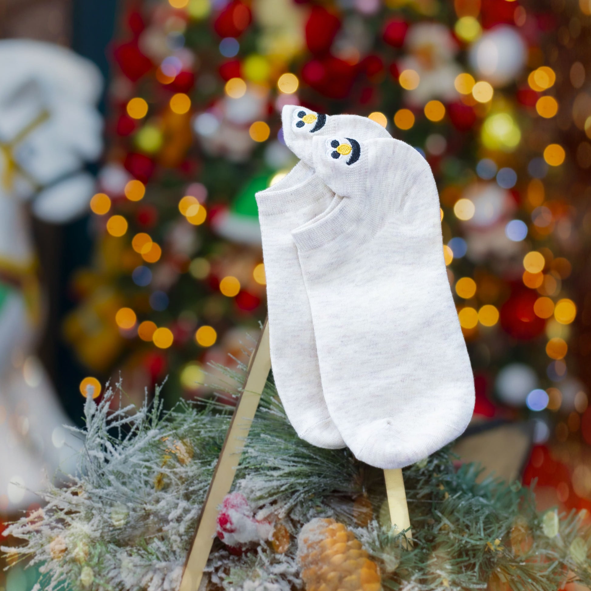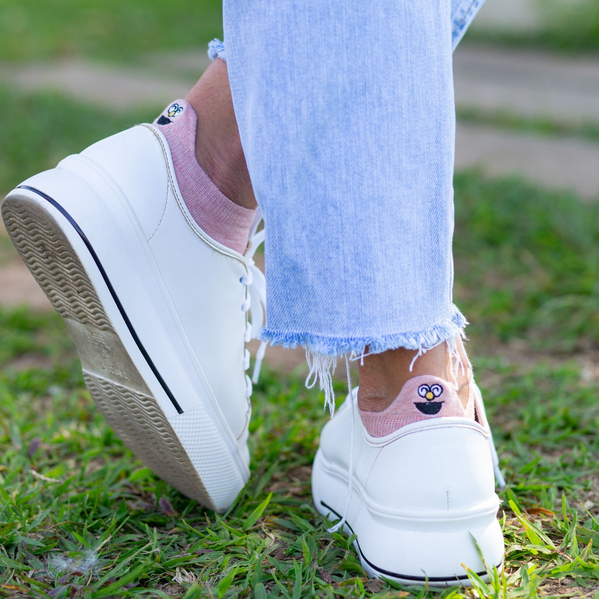 Meias brancas com proteção no calcanhar, kit com 5 pares com diferentes bordados