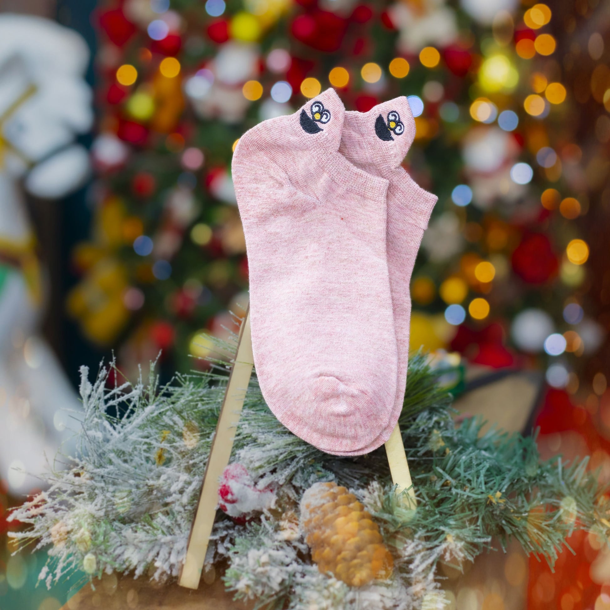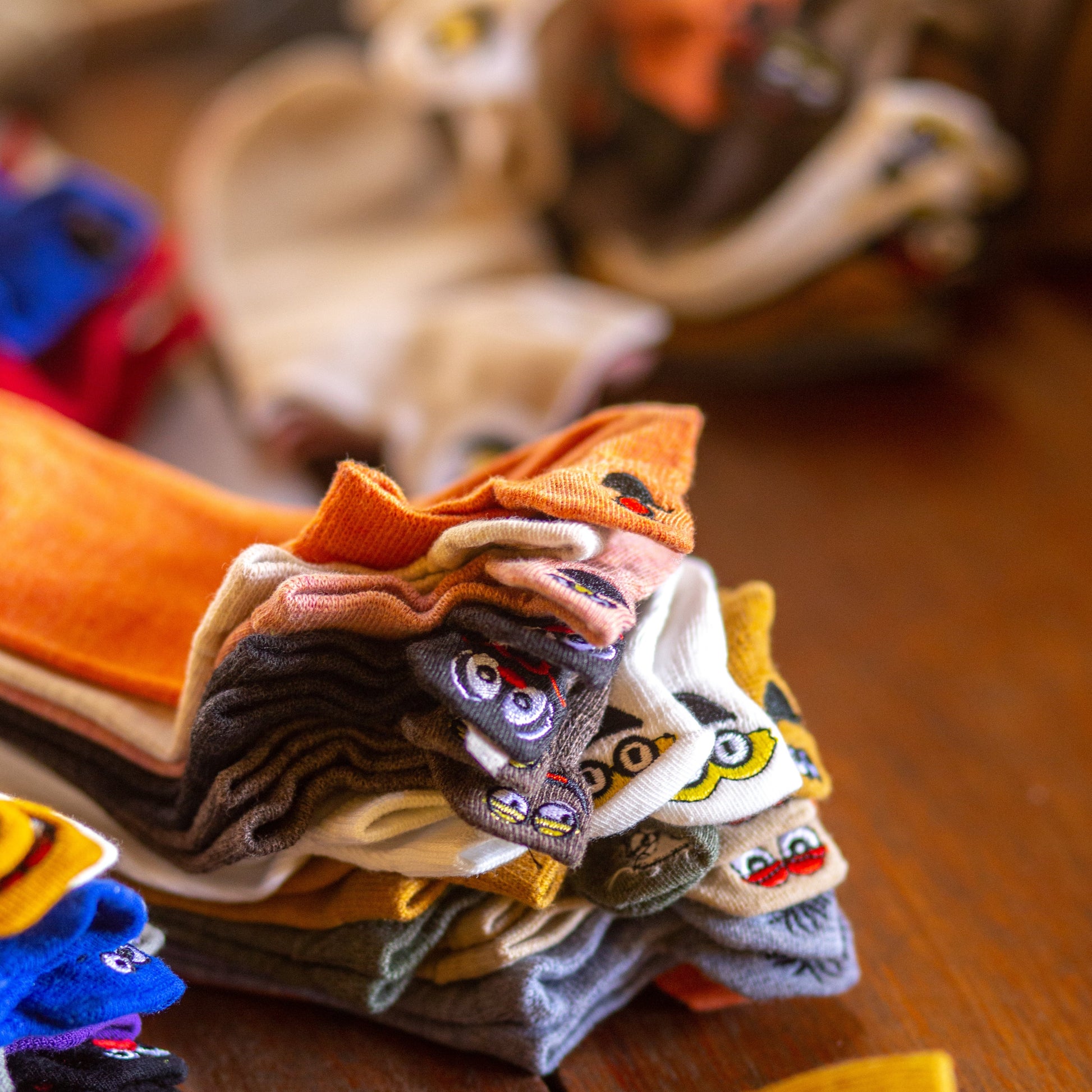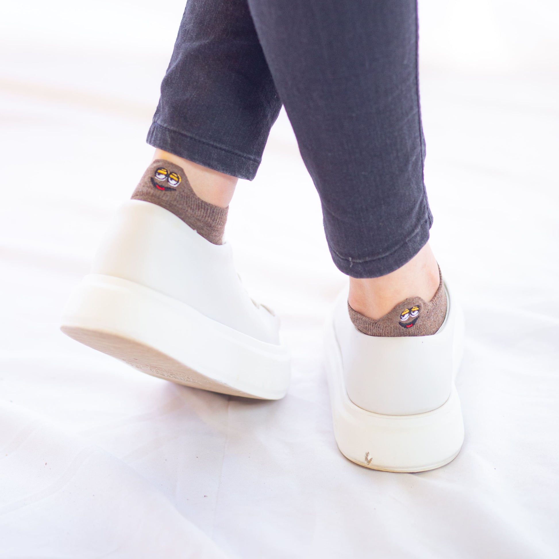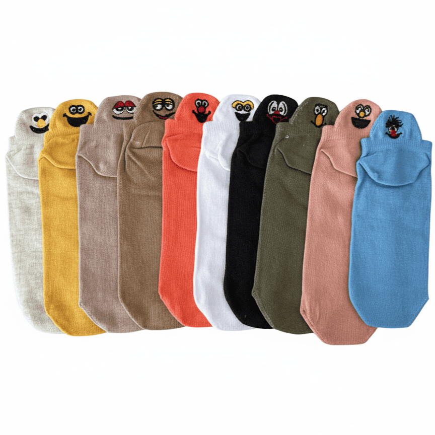 Meias brancas com proteção no calcanhar, kit com 5 pares com diferentes bordados
