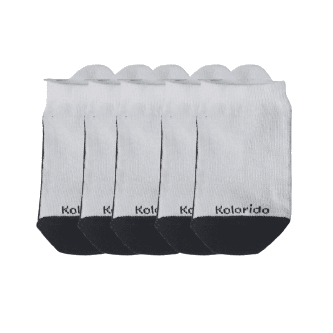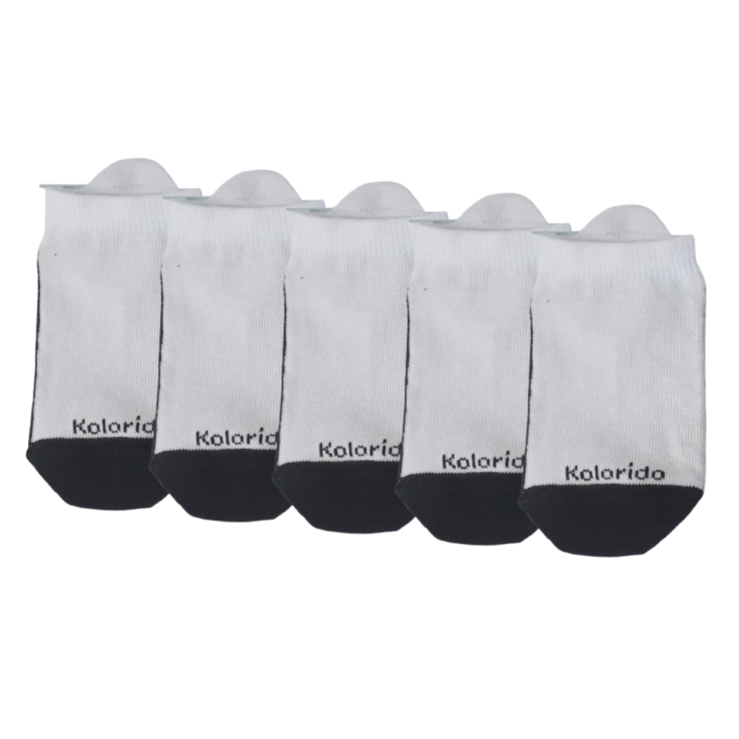 Meias brancas com proteção no calcanhar, kit com 5 pares com diferentes bordados