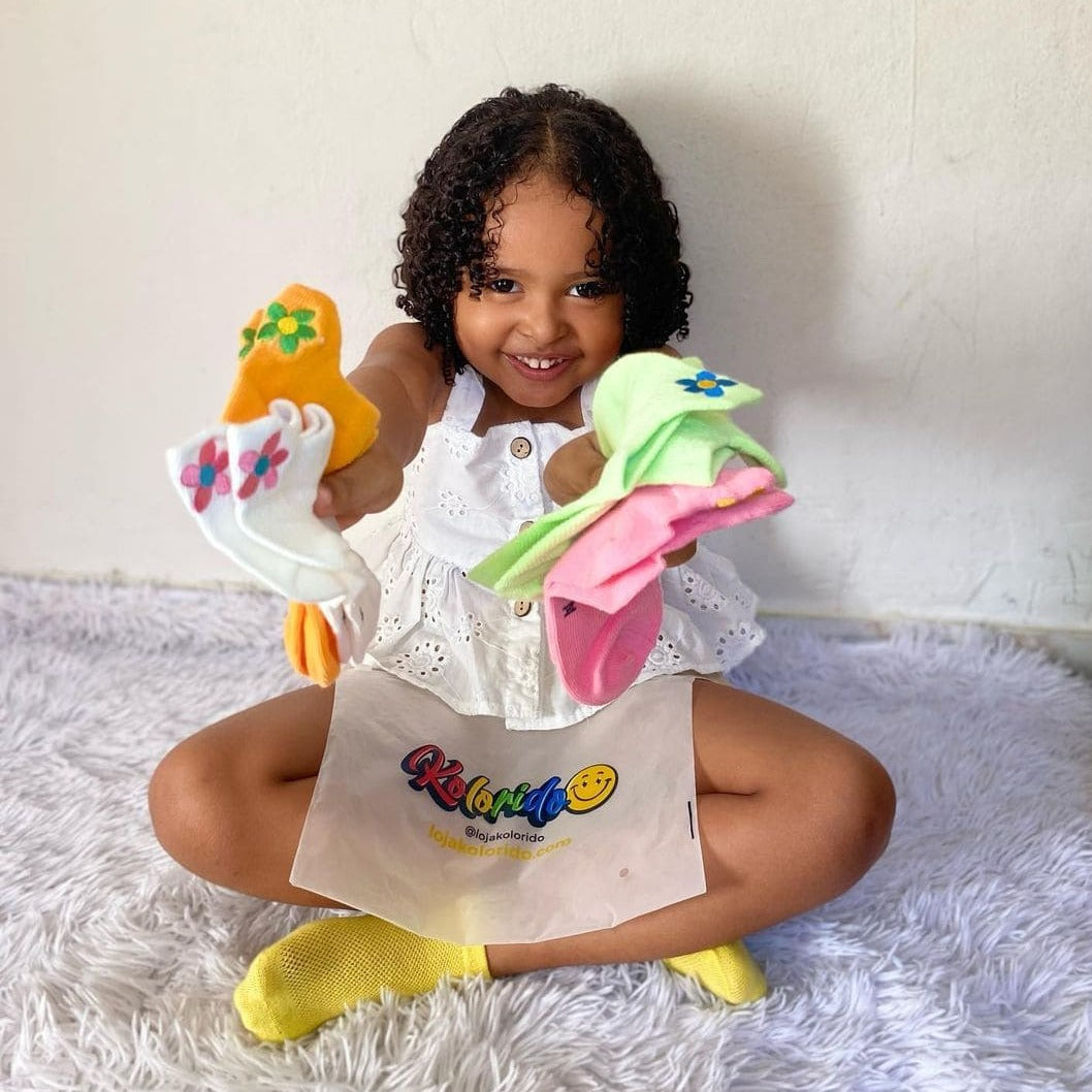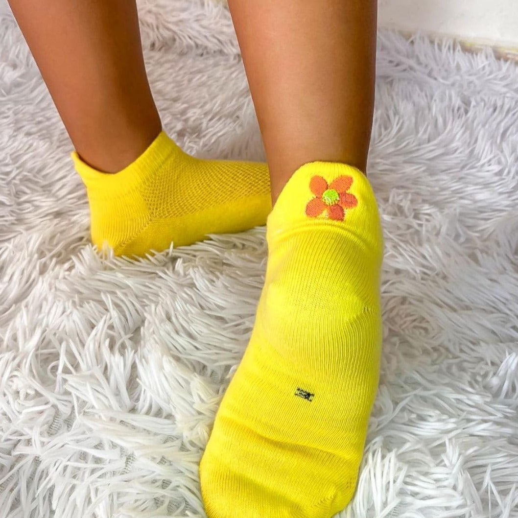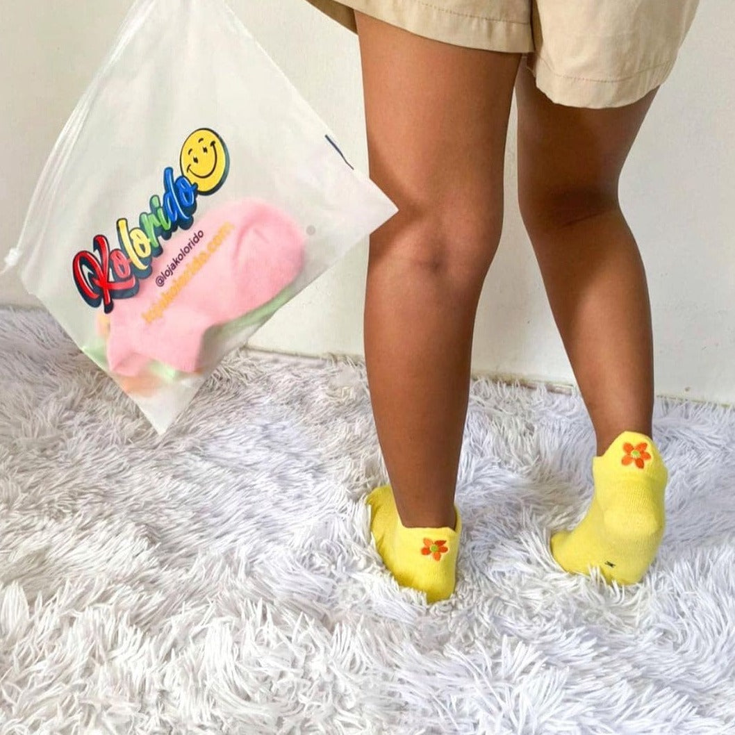 Meias brancas com proteção no calcanhar, kit com 5 pares com diferentes bordados