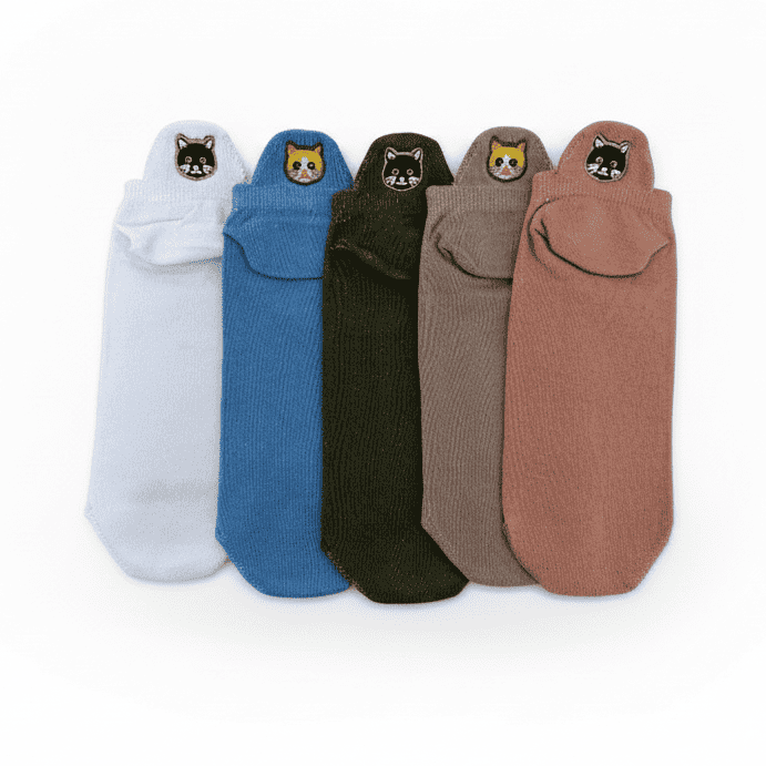 Meias Gatinhos Bordadas- 5 pares