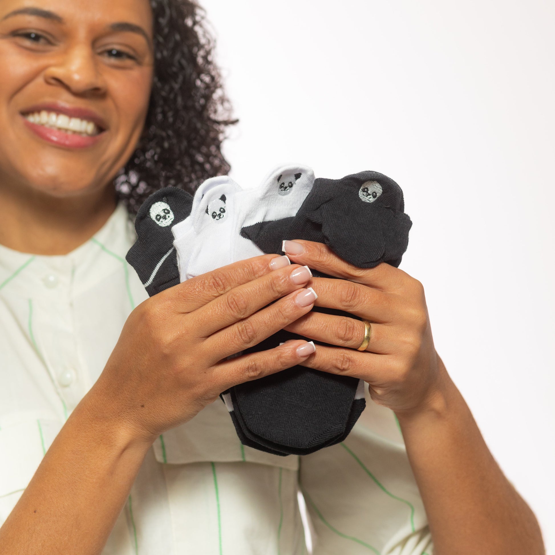 Meias brancas com proteção no calcanhar, kit com 5 pares com diferentes bordados