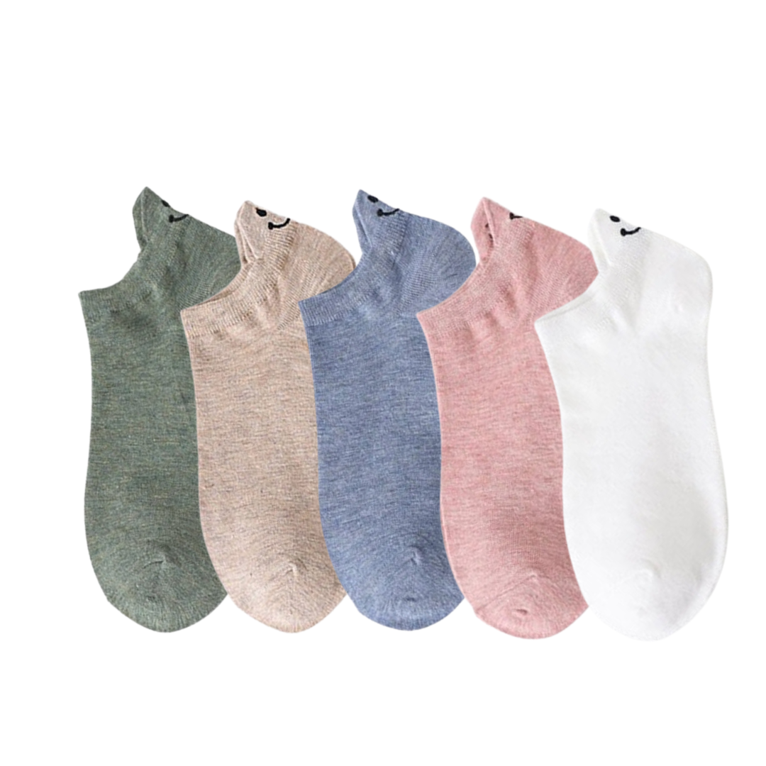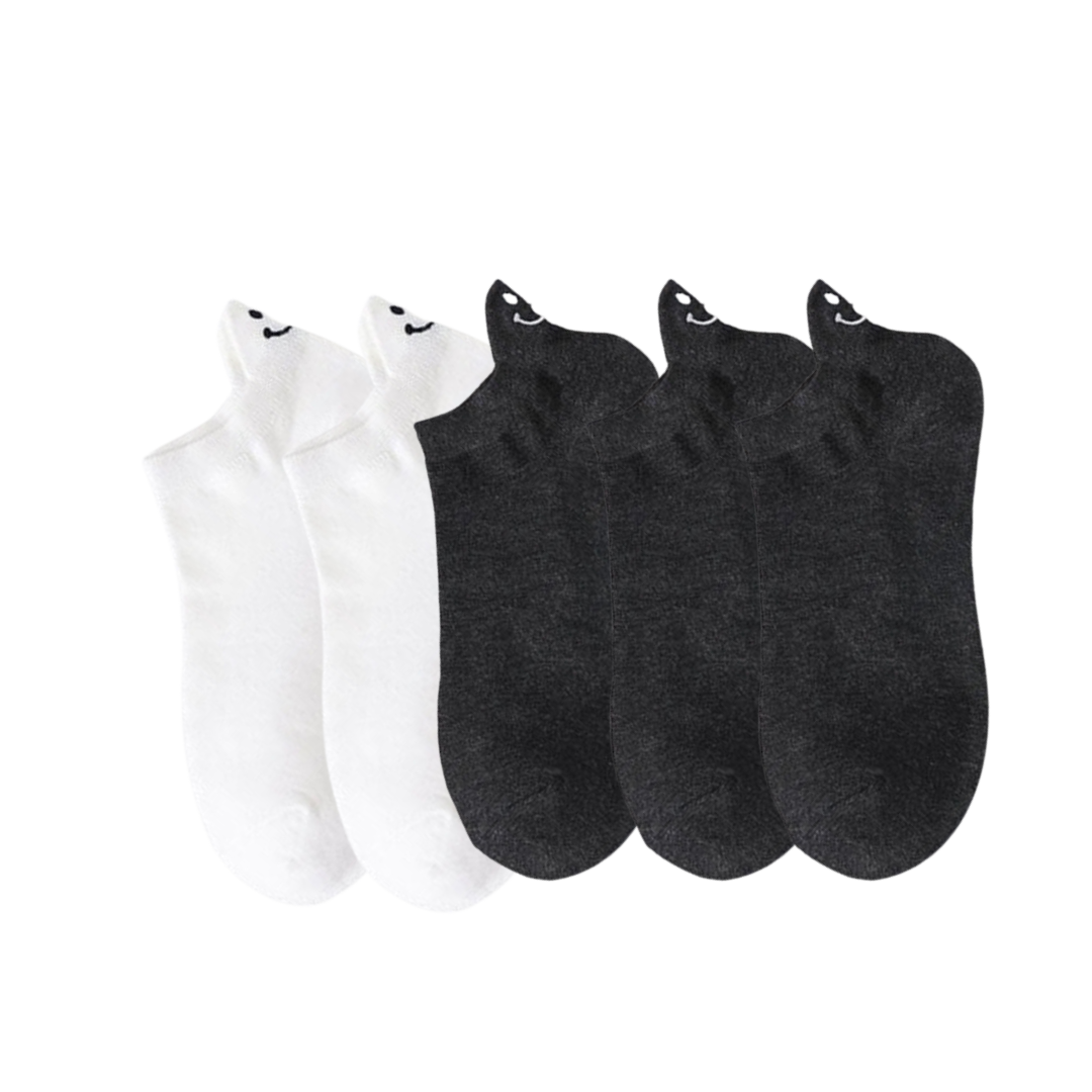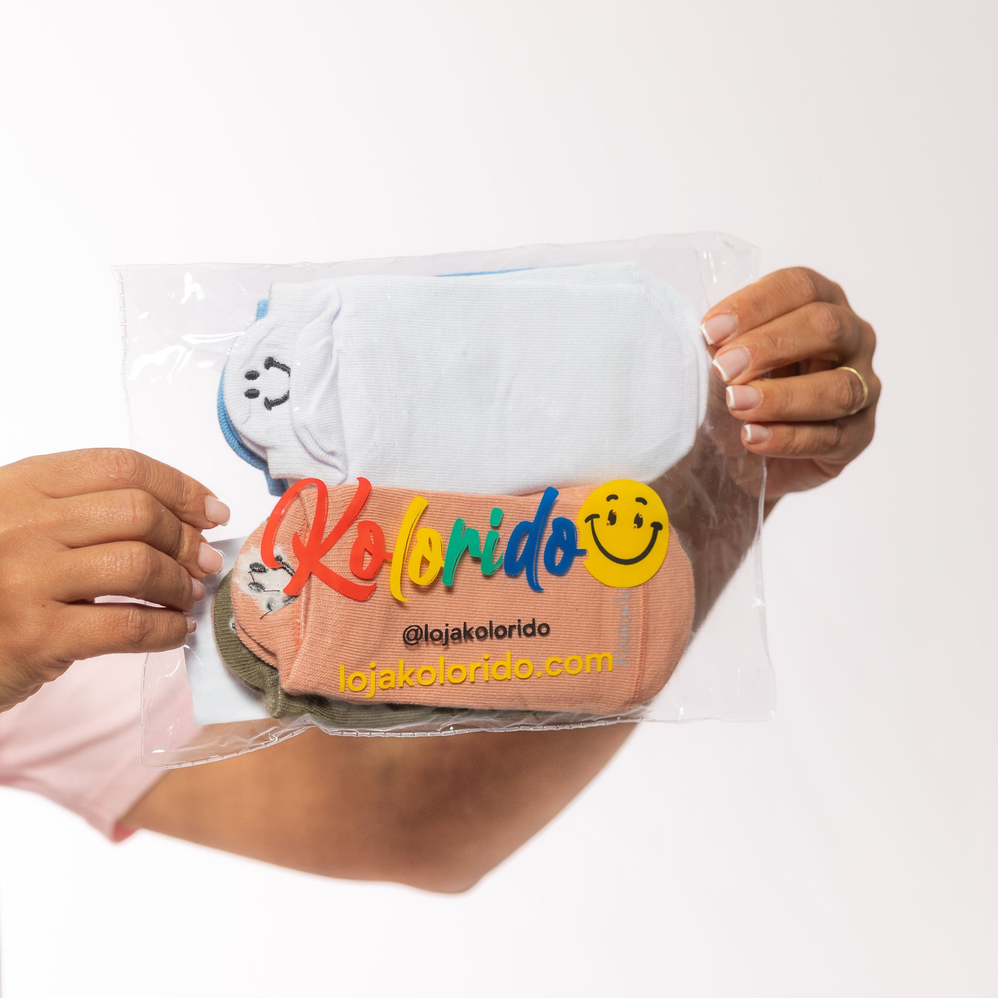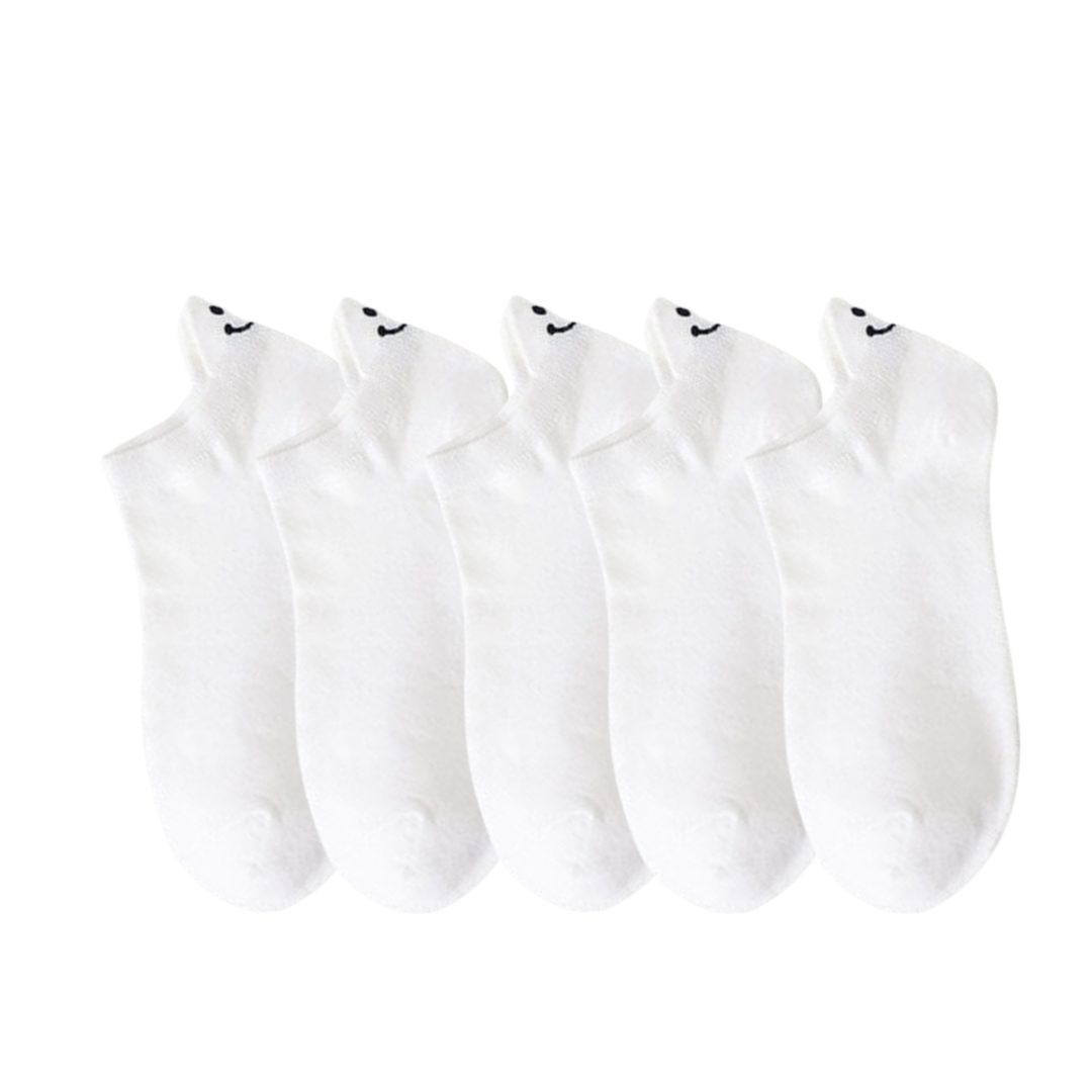 Meias brancas com proteção no calcanhar, kit com 5 pares com diferentes bordados