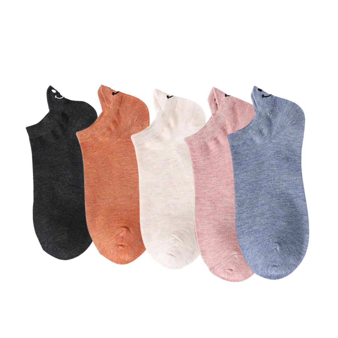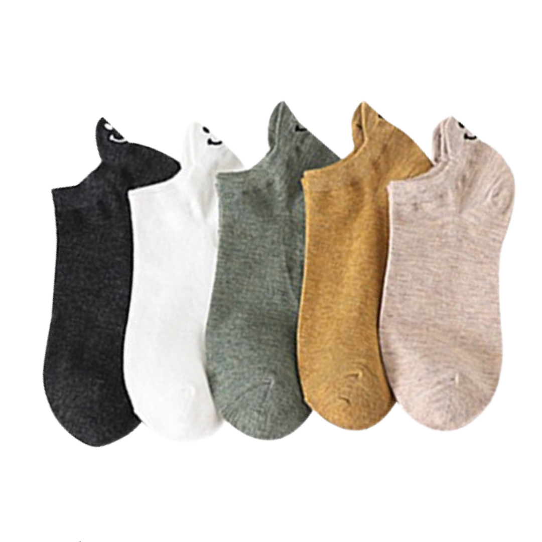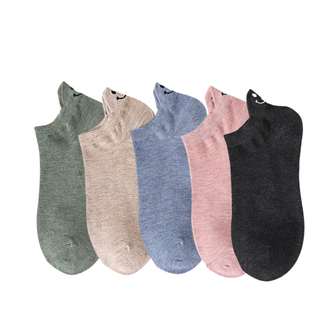 Meias brancas com proteção no calcanhar, kit com 5 pares com diferentes bordados