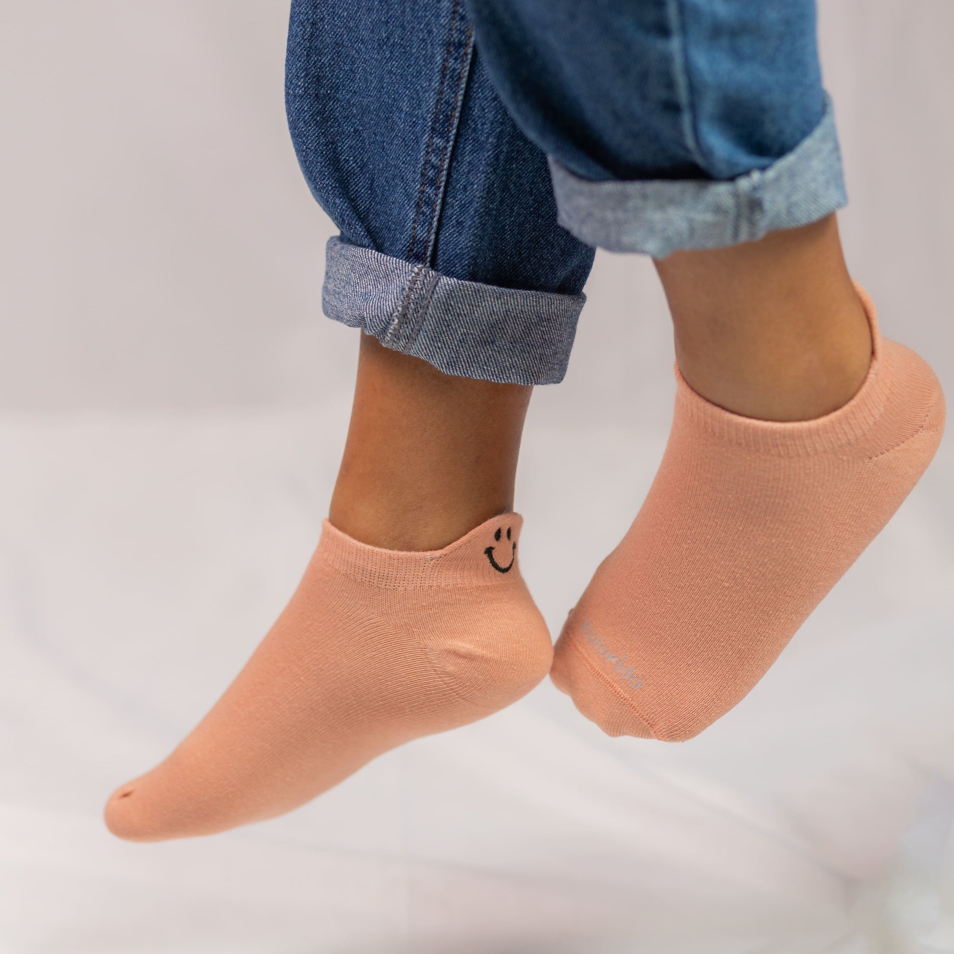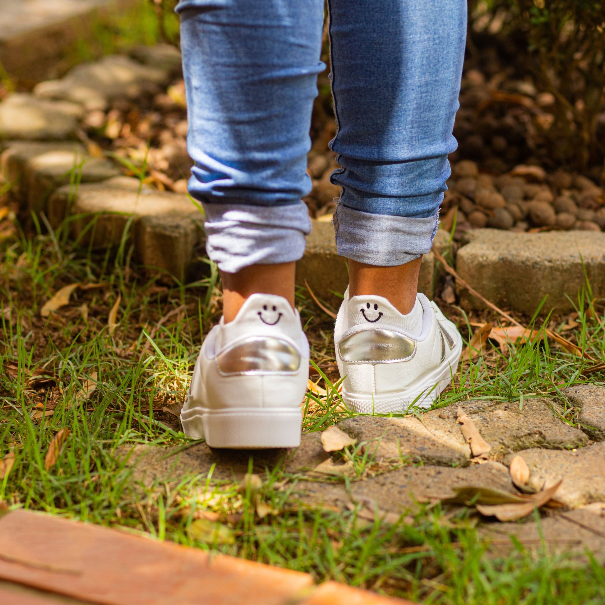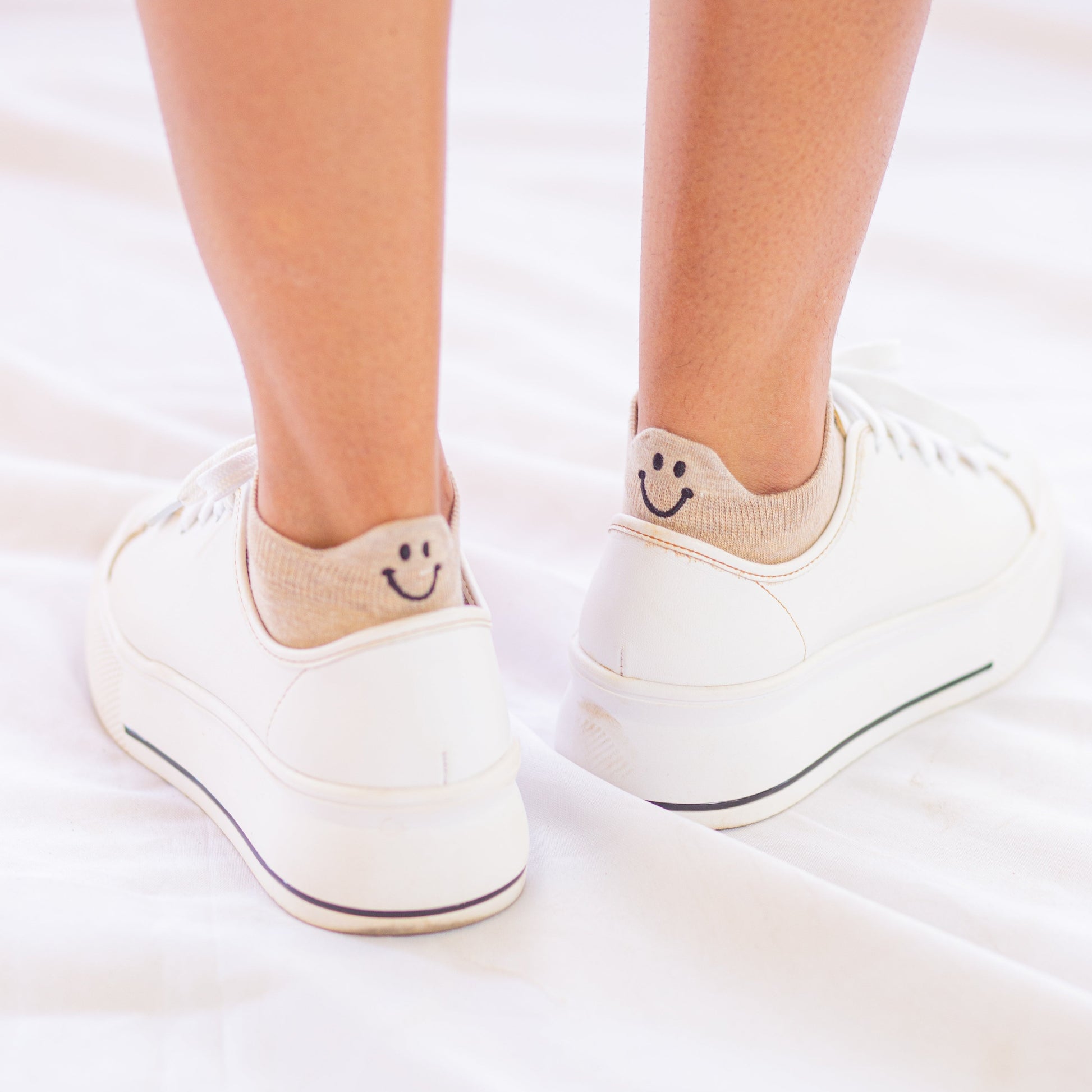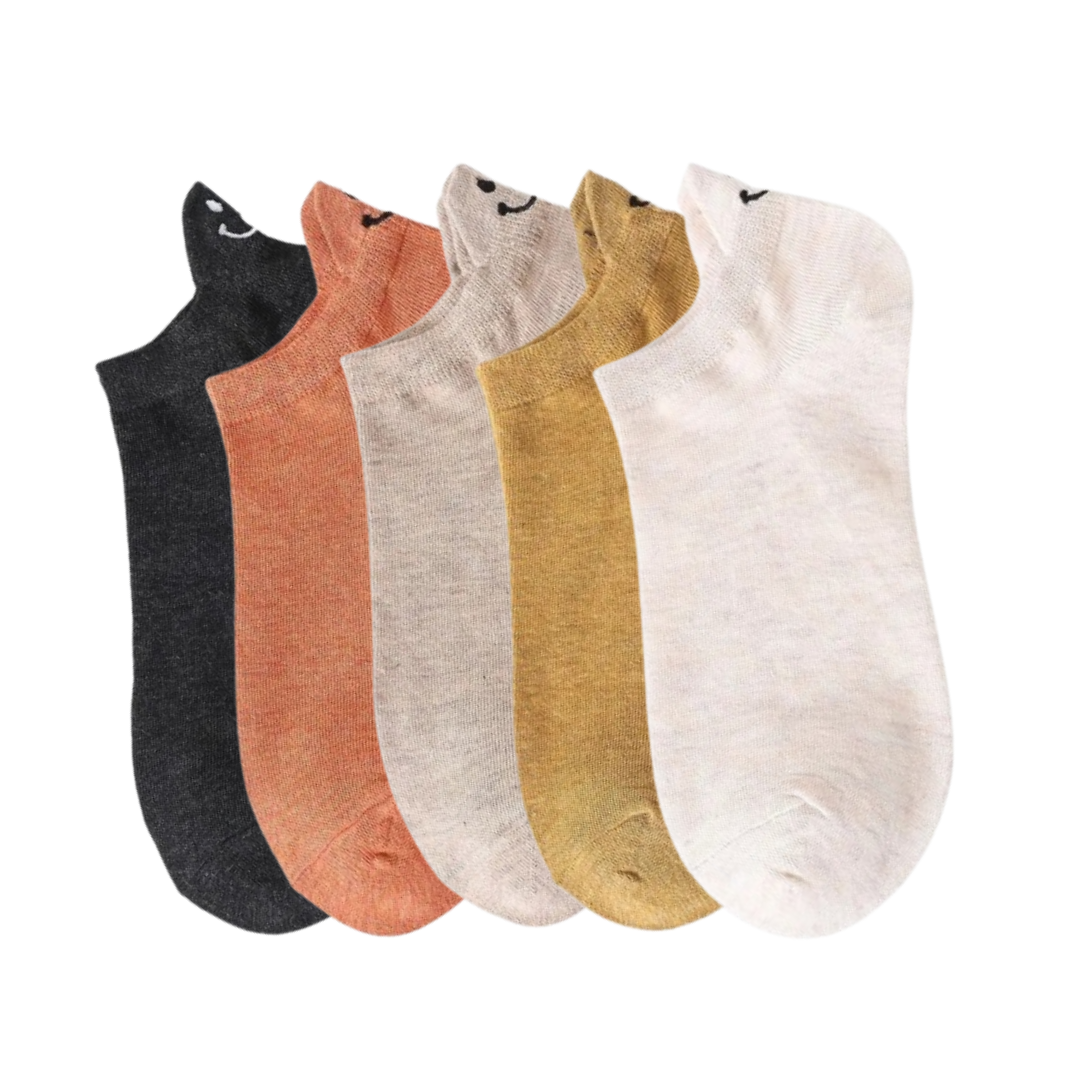 Meias brancas com proteção no calcanhar, kit com 5 pares com diferentes bordados