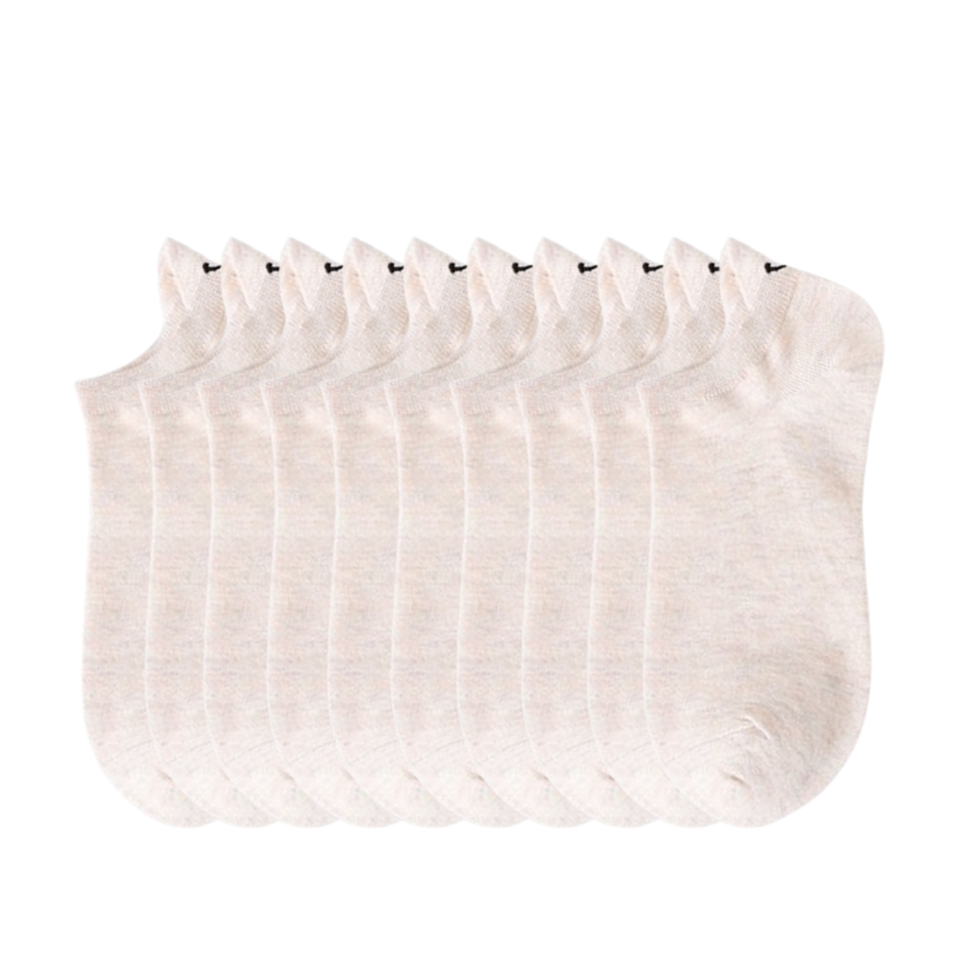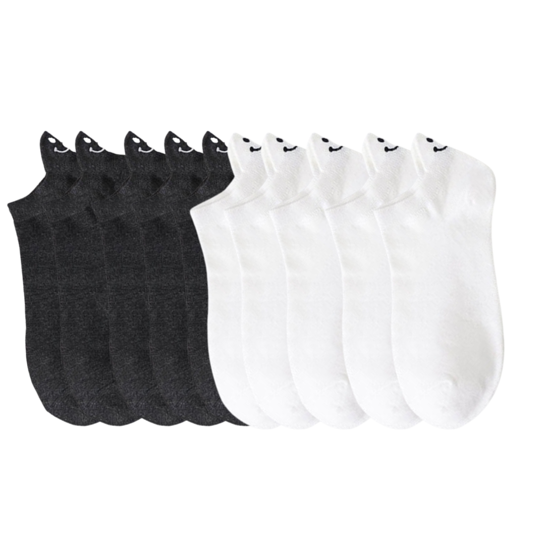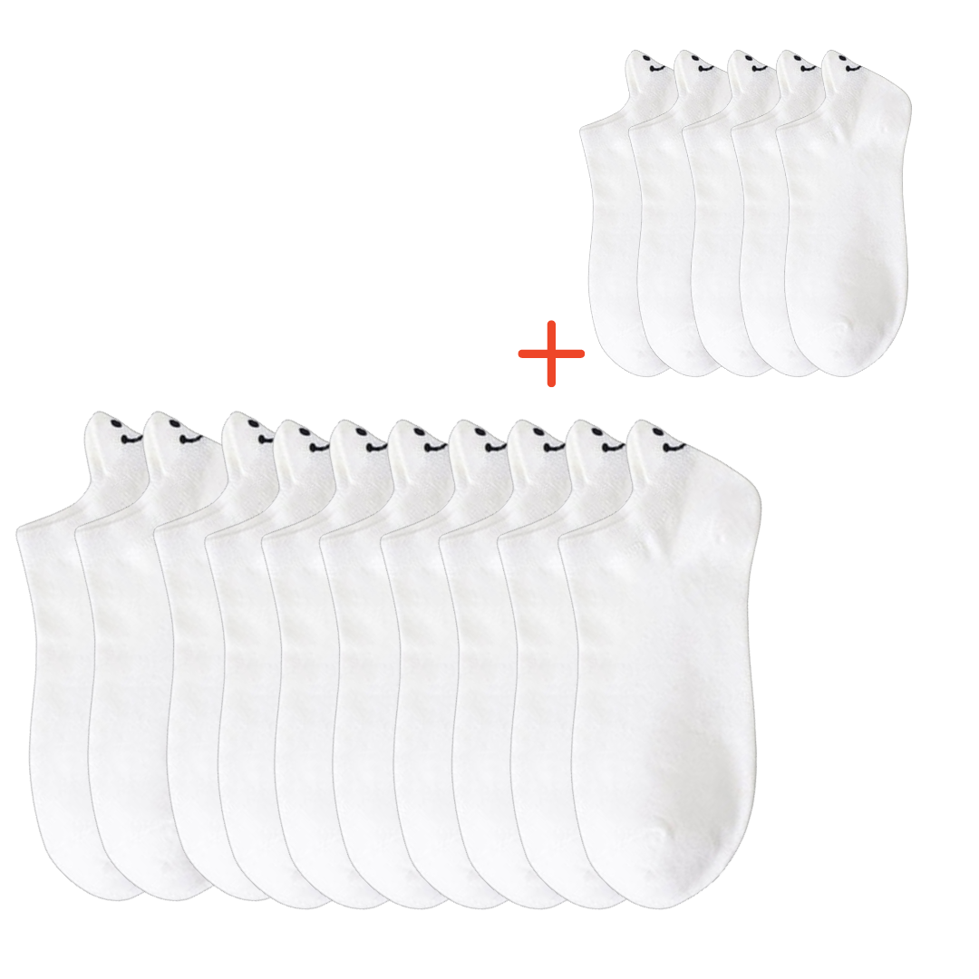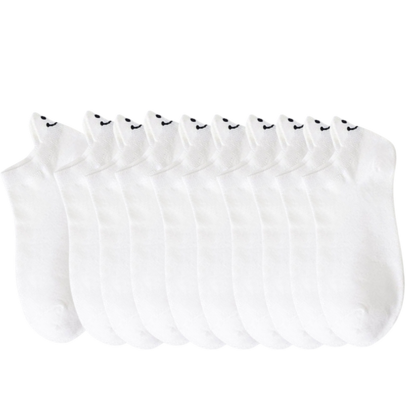 Meias brancas com proteção no calcanhar, kit com 5 pares com diferentes bordados