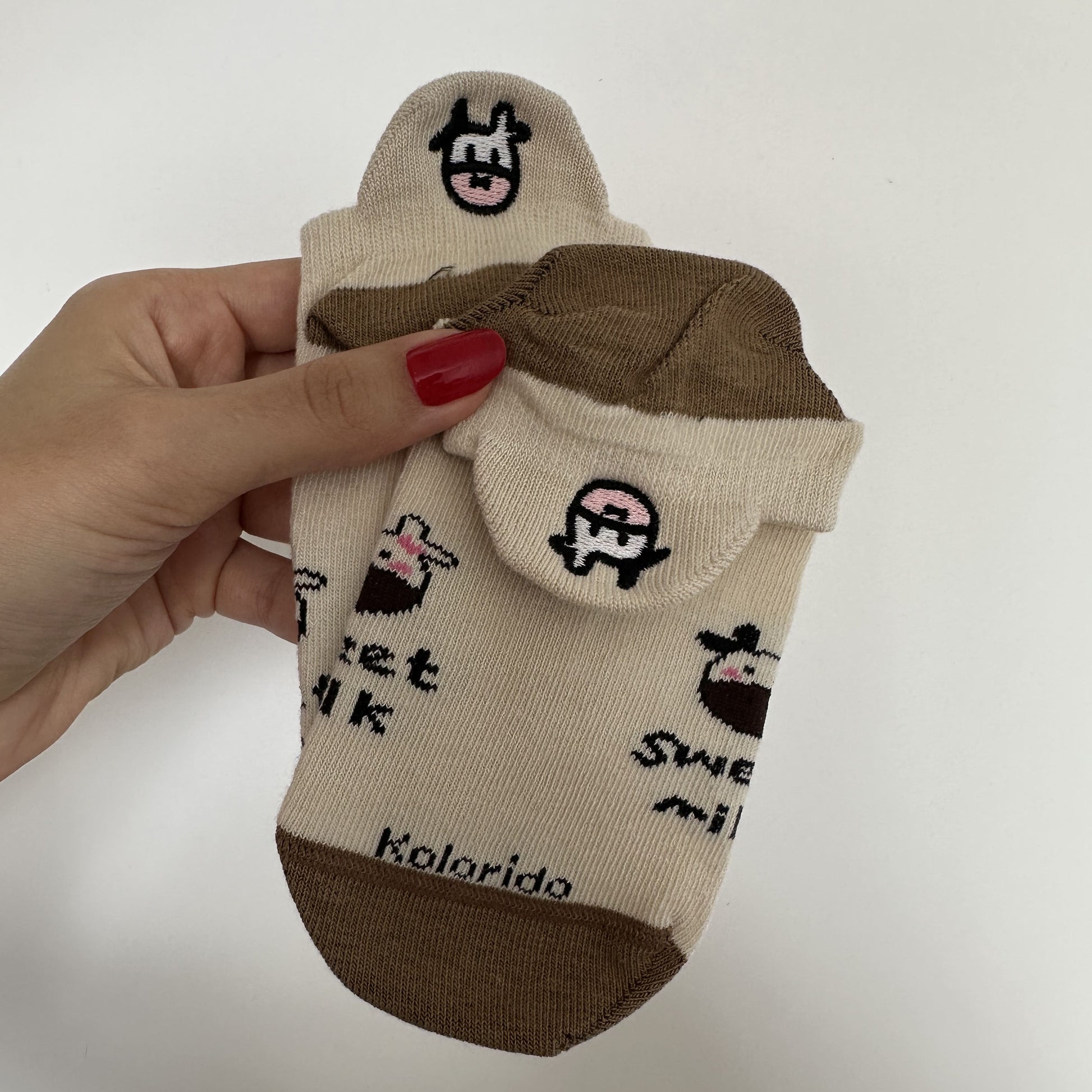 Meias Vaquinha Marrom Bordadas - 5 pares